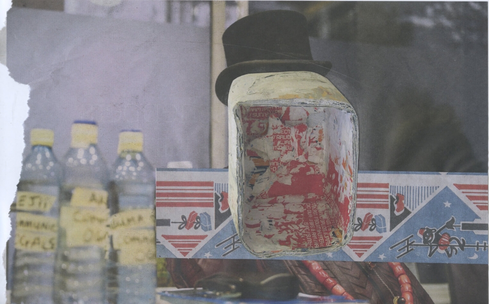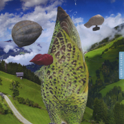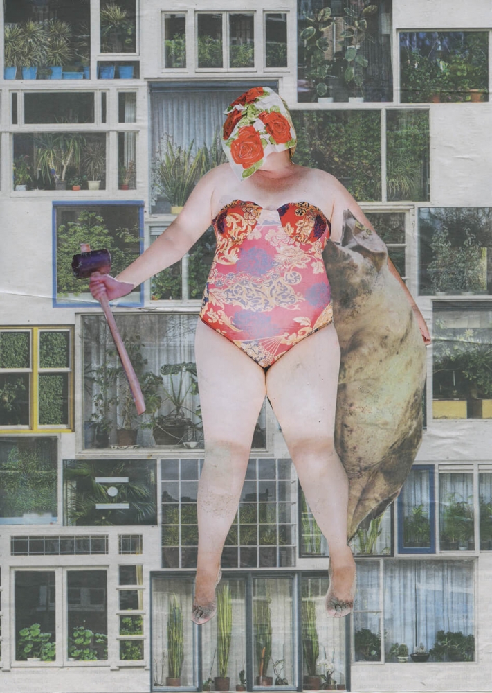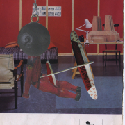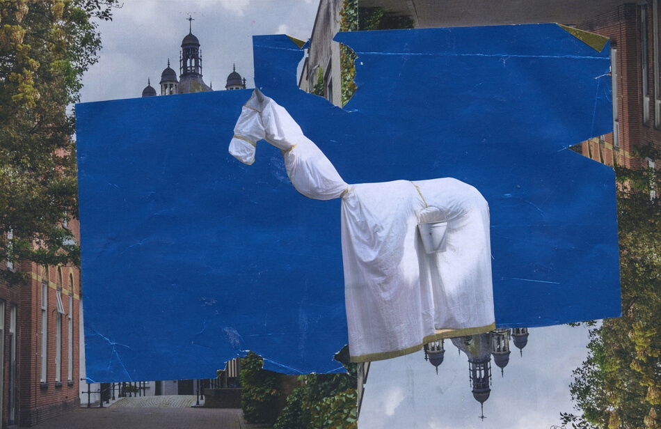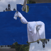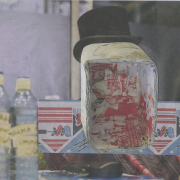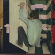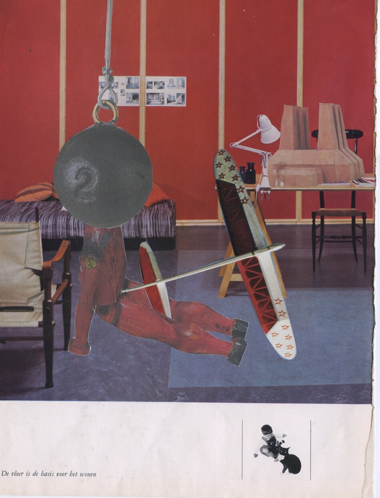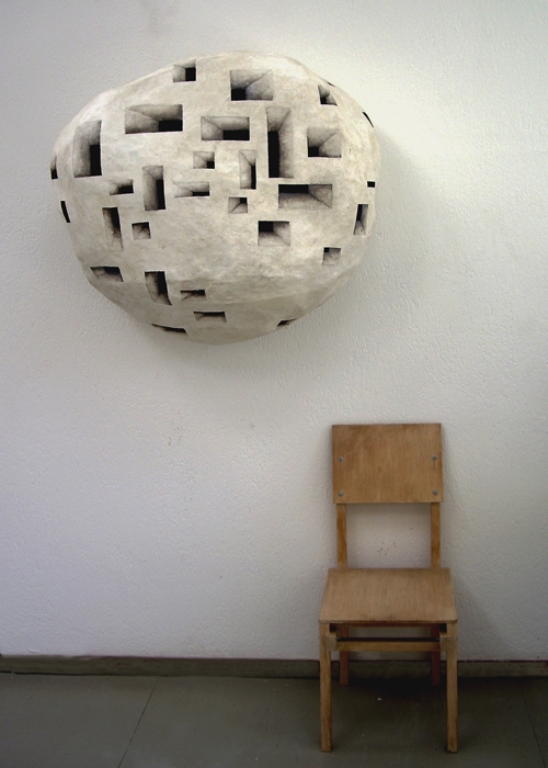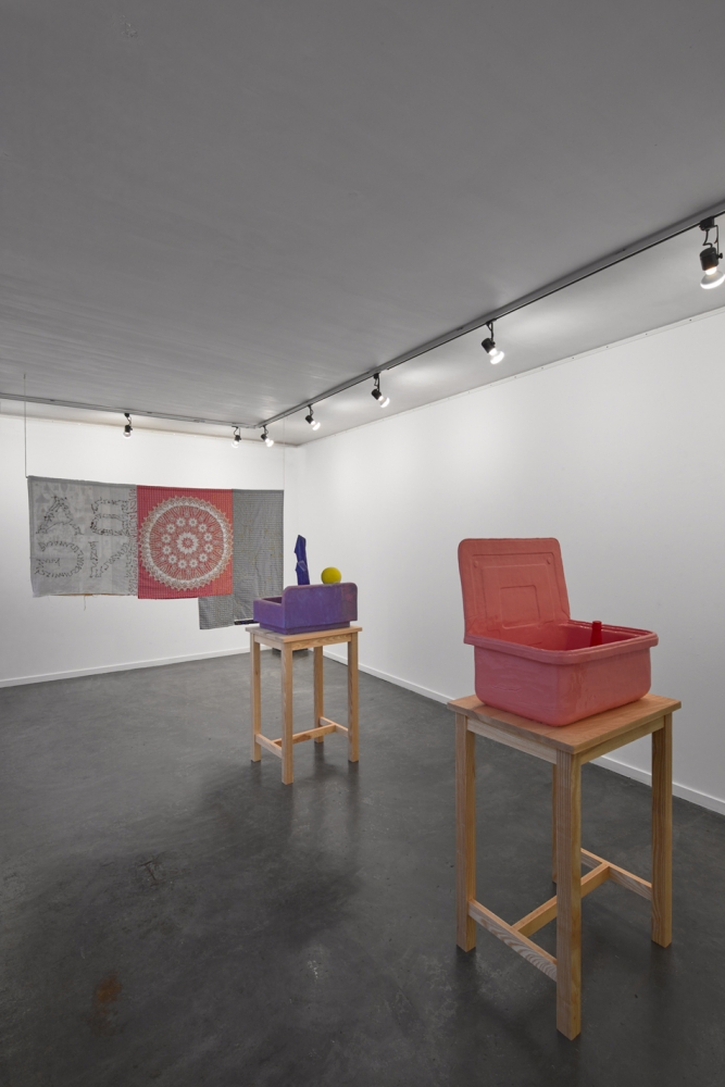verf, hout, touw, isolatiemateriaal, piepschuim 0,70 x 0,70 x 0,25 m.
