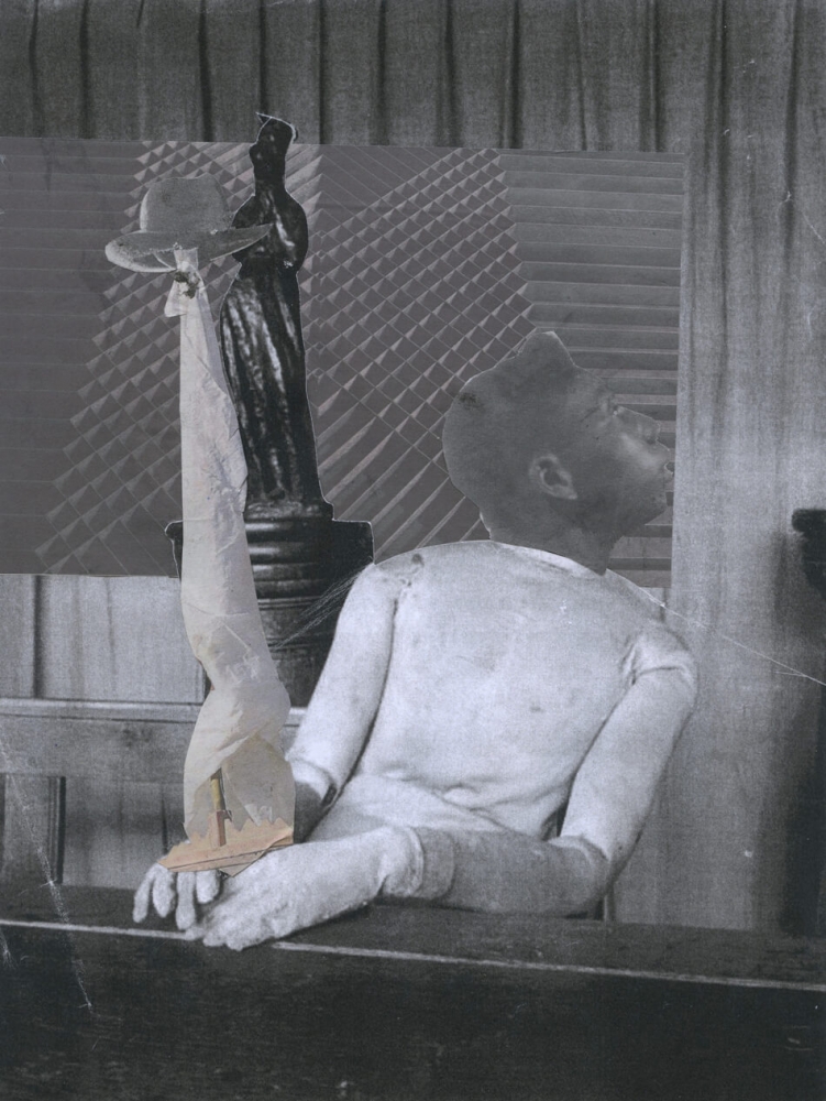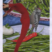 acrylverf, collage, wc-koord, touw 0,97 x 1,25 m. Achmea kunstcollectie