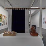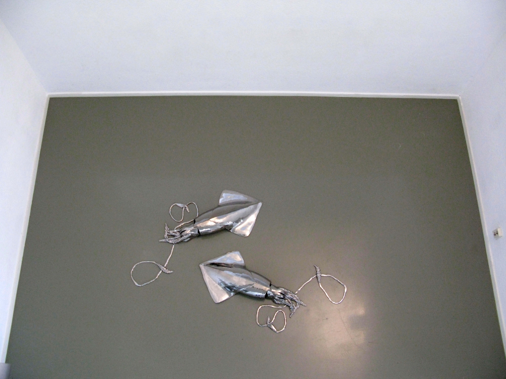 gevonden voorwerpen, piepschuim, papier, aquarel, acrylverf, touw 0,70 x 0,70 x 0,30 m.