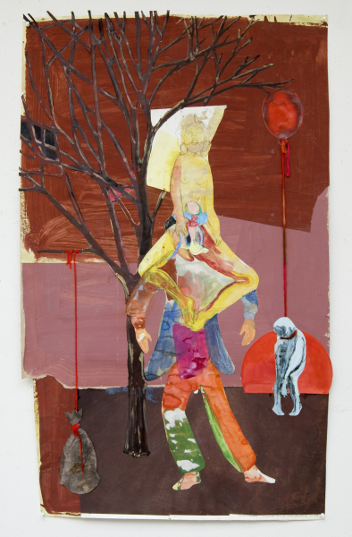 Aquarel, acrylverf, collage, touw
